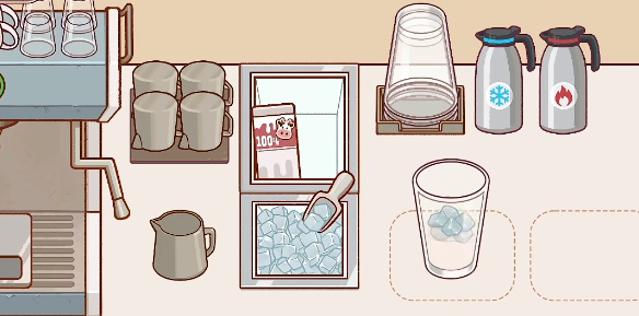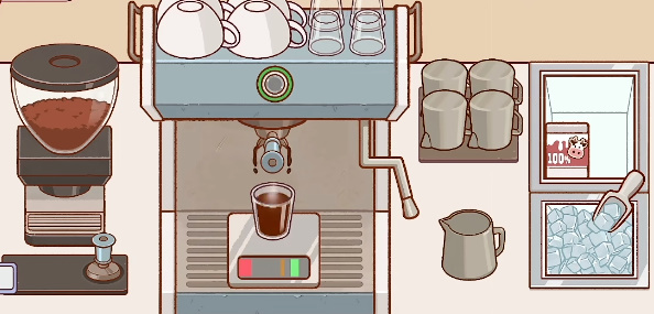 大量的互动式玩法,半自动咖啡机等设备能选择使用,并提供牛奶和冰块等物品,制作玩法更加的丰富。