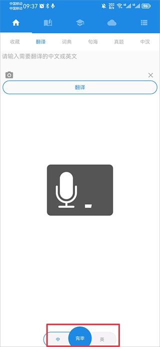 3、轻点下方的话筒图标,接着清晰说出你想要翻译的中文或英文内容。待系统成功识别后,翻译结果便会即刻呈现。