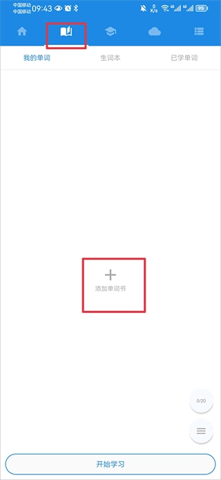5、在单词界面中你还可以将你的课本添加到单词中进行学习,点击添加单词书。