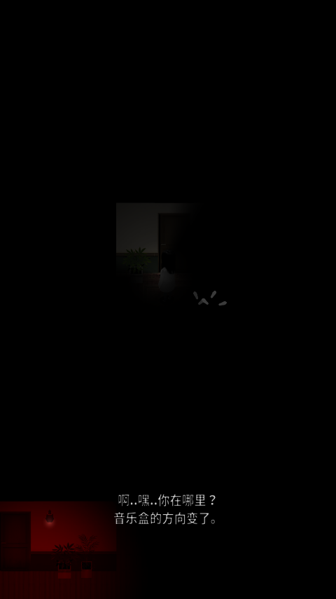 5、这时你会发现音乐盒的声音变方向了,这扇门打不开了,你需要往回走,注意要避开那个人头走。