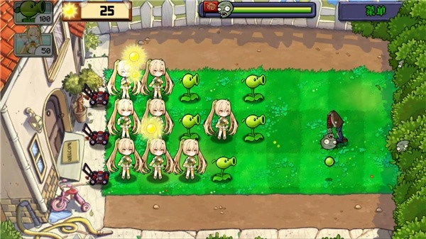 1. 游戏里有着繁多的植物,其中不少都进行了娘化设计。玩家只需持续布置这些植物,就能够把僵尸给消灭。