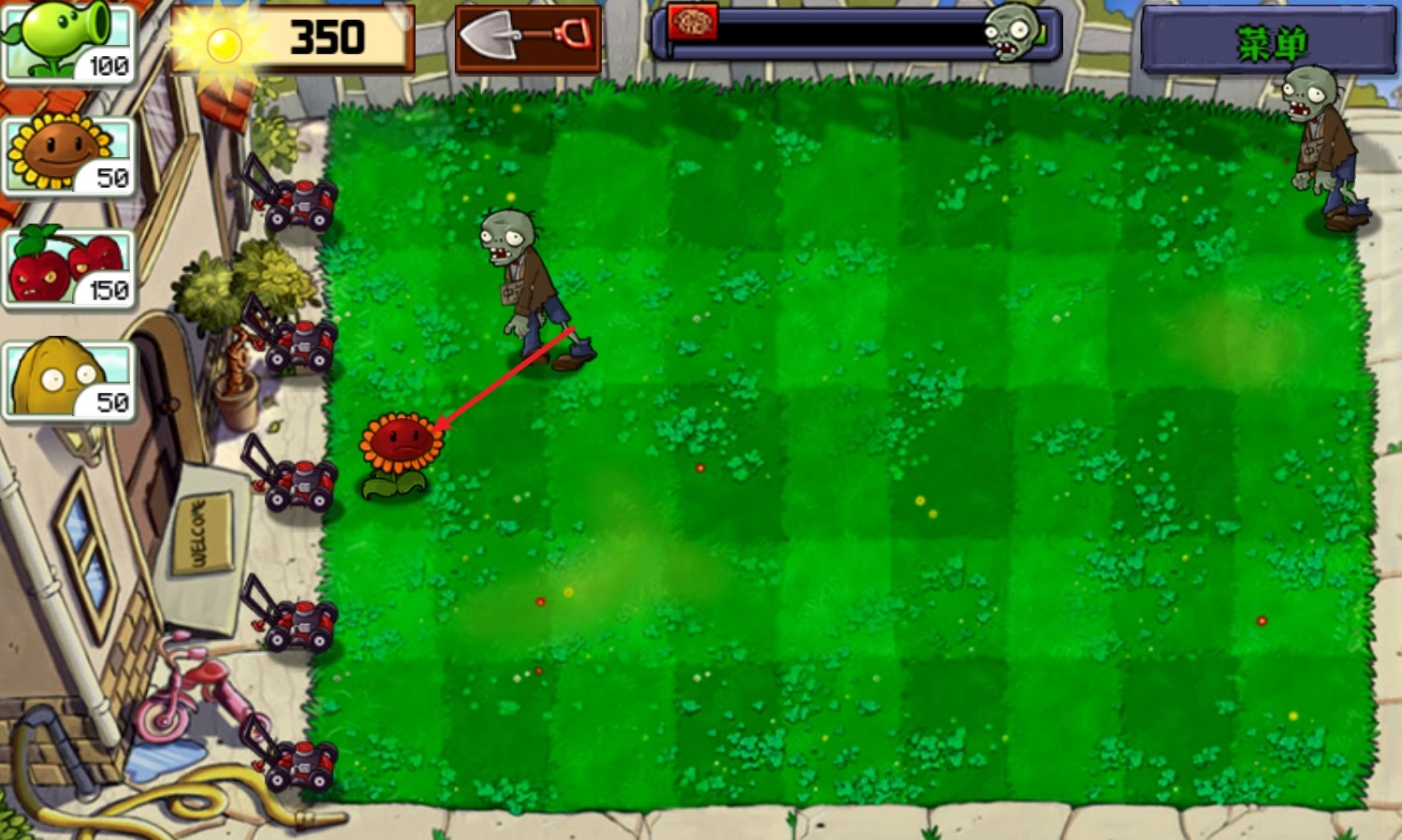 1. 进入游戏后,初始操作与原版相同,依旧是通过种植植物来抵挡僵尸的进攻。当你试着种下红温向日葵,便会察觉到它在产出阳光之后,会慢慢进入红温状态。