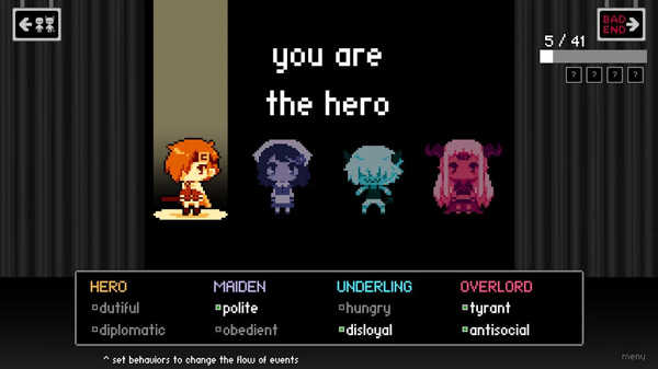 解锁条件:需少女解锁彬彬有礼,喽罗解锁悖逆反叛、胆小儒弱,魔王解锁残暴不仁、不喜交际。