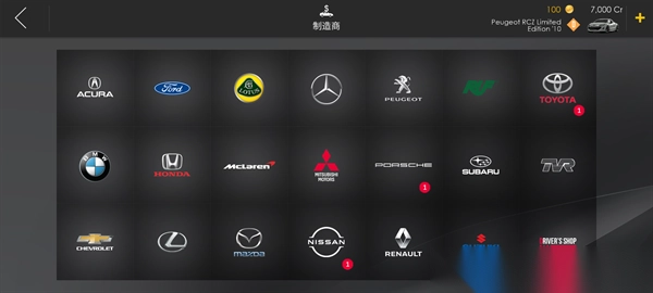 2、在制造商页面可以查看各种制造商生产的各种车型,包括讴歌、福特、路特斯、奔驰、标准、丰田、马自达等等,