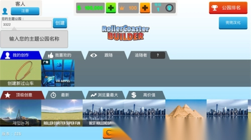 4.创建玩自己的过山车还可以看看别人的顶级创意,在下面点击一个即可。
