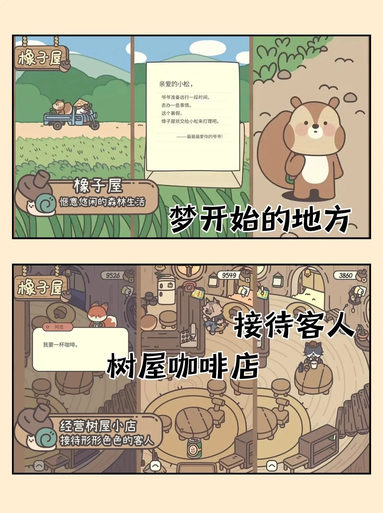 1、进入游戏,你将化身可爱的小松,经营你的橡子屋小店