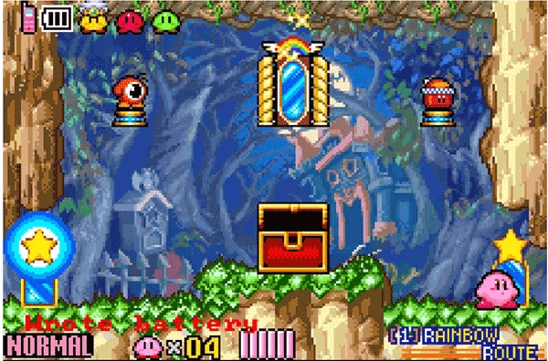 《星之卡比镜之迷宫》呈现出像素画风,而且设有诸多全新关卡等待你来挑战。要达成这款游戏100%的完成度,需开启全部宝箱、击败所有大魔头与最终魔头,并且进入所有房间。