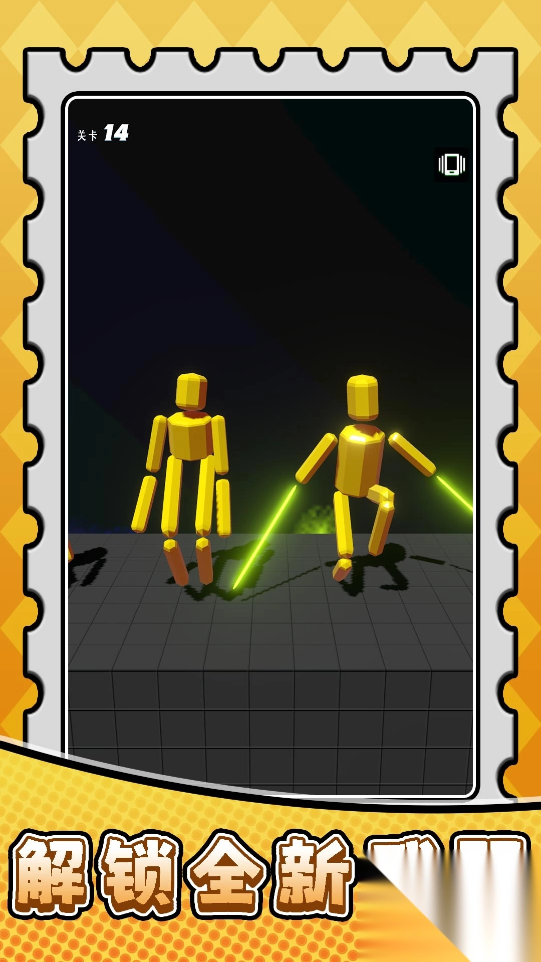 2、闯关成功获奖励,用金币解锁新武器,像光剑,装备后木偶战力升级,应对更难关卡。