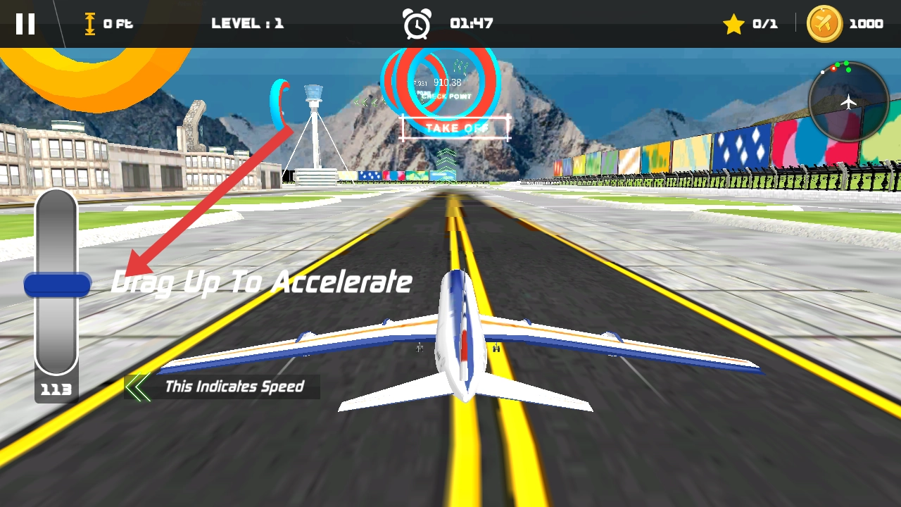 2、需要拖动左侧加速条向上,按照系统提示Drag Up To Accelerate提升飞机速度,为起飞进行蓄力。