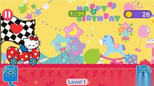 6、操纵凯蒂猫驾驶车辆闯关,收集路上金币直至抵达终点。