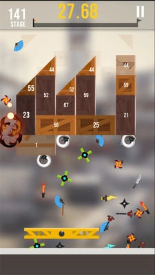 游戏中,你需要射出各种武器来击碎上方的方块。掌握射击的角度和力度是关键,确保你的武器能够准确地命中目标。
