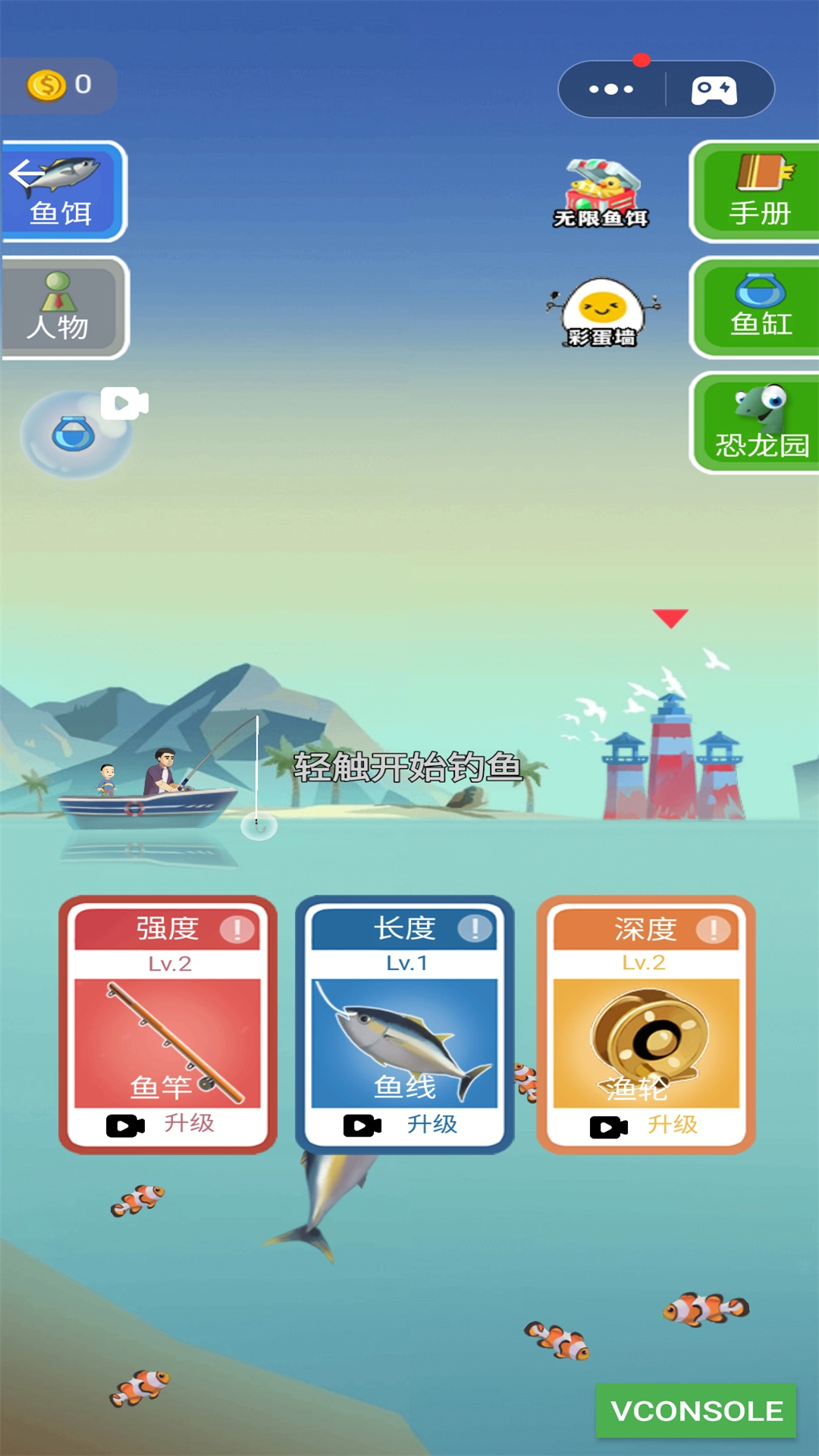 3、通过奖励来对鱼竿、鱼线等装备进行升级,以此增强钓鱼能力,进而解锁新的鱼种,持续丰富水族箱,达成收集目标。