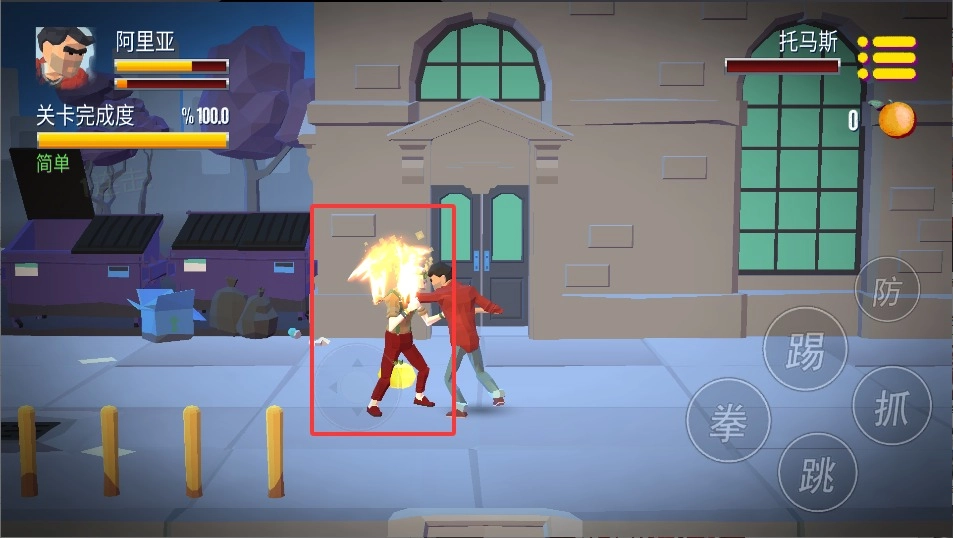2、点击右侧按钮可发动拳脚攻击,快速双击则能触发跳跃飞踢,合理组合招式可打出更高伤害。