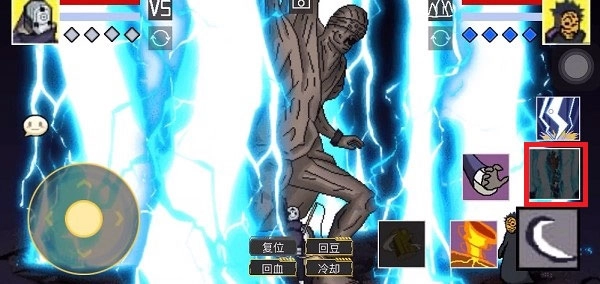 2、接着在释放大招的过程,点击其中的【复位】上方的隐藏按钮,可能会有点卡。
