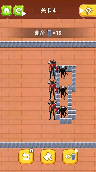 2、从顶部资源栏拖拽砖块到指定位置搭建防御工事,剩余砖块数量会实时显示在界面上方。