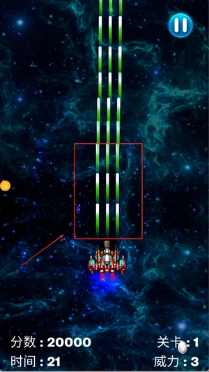 1、开始游戏后选择关卡进入战场,滑动屏幕控制战机左右移动,避开敌方子弹并瞄准目标进行连续射击。