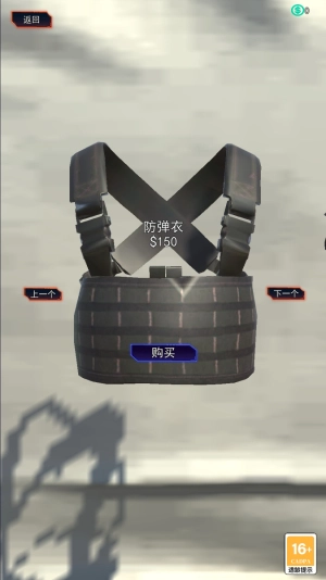 2、使用金币可以解锁更多装备,如防弹衣、手枪等;
