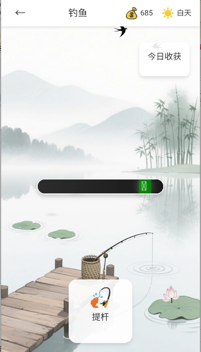 2、溪边垂钓,畅享悠然时光: 在闲暇之际,不妨移步至澄澈的溪边,手握钓竿,静静等待鱼儿咬钩。溪边垂钓,既能舒缓身心,放松心情,若有幸钓到鲜鱼,还能带到集市上售卖,换来维持生活所需的钱财。