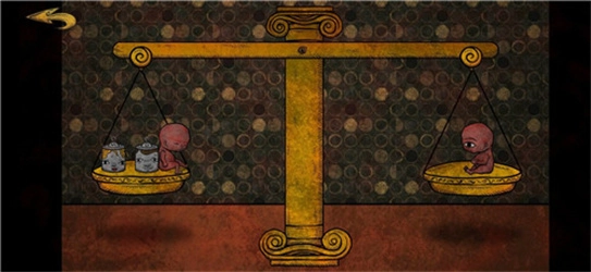 把象征父母的砝码和双眼男婴(弟弟)置于同一侧,而将独眼男婴(哥哥)放置在另一侧。