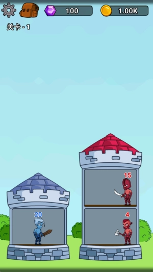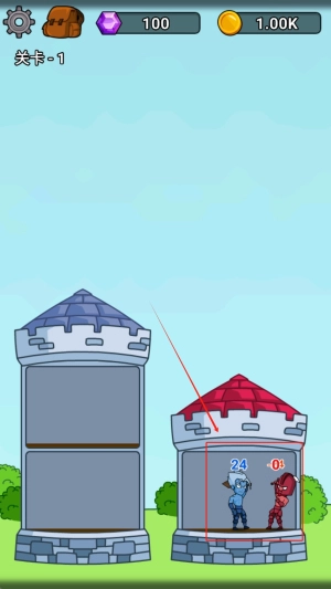 1、在初始界面观察两座塔楼状态,优先点击右侧红色塔楼部署蓝色角色,利用"24"兵力优势发起首轮进攻。