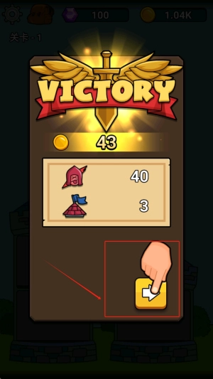2、胜利界面出现时查看奖励明细,确认获得43积分、40件头盔和3面旗帜后,点击右下角黄色按钮领取奖励。