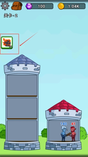 3、在进入第二关卡之前,点击左侧的卡牌图标。此时,依据右侧城堡所显示的“140”和“41”的兵力情况,合理地搭配卡牌组合,以此来应对不同强度的敌人。