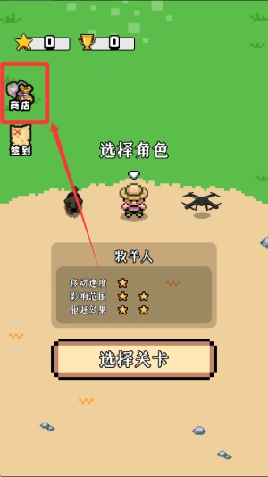2、进入“商店”界面,用积累的货币或道具,选购角色强化物品与新角色。