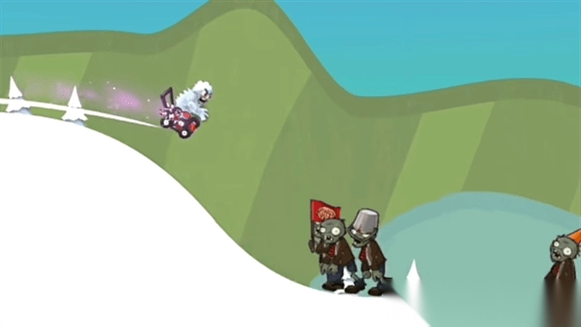 2. 此外,融入了《植物大战僵尸》里的僵尸元素,玩家能够乘坐小推车去碾压路障僵尸。