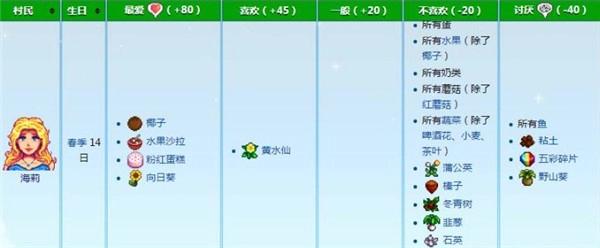 星露谷物语海莉喜欢什么礼物