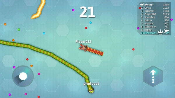 1、这个游戏本质上考验的是大家的反应能力。在角色还是小蛇时,可以低调发育;要是足够机灵,还能诱导大蛇撞上自己的身体,使其化为自身的一部分,这便成了你快速长大的捷径。