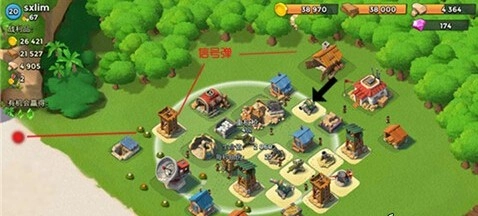1. 切勿把两个或三个防御设施与建筑设施放置在一起,如此一来,一旦使用火炮攻击红色区域,这三个建筑物便会被炸掉。