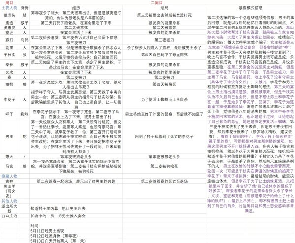 零人势力(暗黑结局):5 月 20 日当天,阳明公然宣称自己是狼,咩子对此表示拥护。李花子见状,放弃反抗,独自离去。近望这时透露,他和泰长早就知晓所谓的“神”是春假扮的,这一直是他们三人之间共有的秘密,就连那副装扮也是三人一同设计的。实际上,“貉神”不过是春自己的想象罢了。就在此时,阳明从怀中掏出千枝实自杀时用的霰弹枪,指向近望——原来,那天晚上是春把枪藏了起来,并在跳崖前告知了阳明——随后开枪打碎了近望的头颅。之后,只要阳明再杀死李花子和咩子,狼阵营便能获胜。在这三位神明之中,除了申奈明神,还有貉神以及一位敌对神——阳明猜测那是以人类为宿主的神。所以,只要能真正杀掉李花子和咩子,或许他就能摆脱这无尽的生死轮回。然而,阳明内心对杀死咩子极为抵触,始终不愿跨过自己内心的最后一道底线。