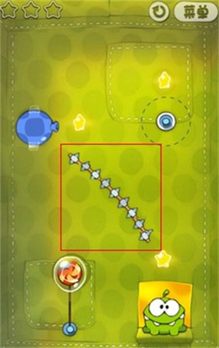 6、滑块能够在滑道内上下或左右移动。有时需要快速移动滑块,以此增大糖果的摇摆幅度,从而获取一些星星,同时还能拉紧绳子。