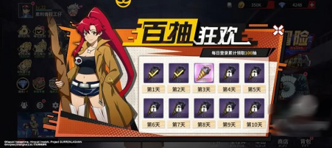1、加入【百抽狂欢】活动,每天登录就能领取“超强钻头X10”,要是累计登录,更可收获高达100抽的丰厚奖励。另外,参与【累计签到】活动,每日登录同样能拿到丰富资源,累计登录到第二天,即可领取六星颜面【红莲螺岩】 。