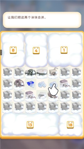 2. 在合成界面,依照提示把相同物品进行合并,像合并这两个冰块,仅需简单地点击并拖动就行。