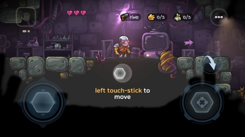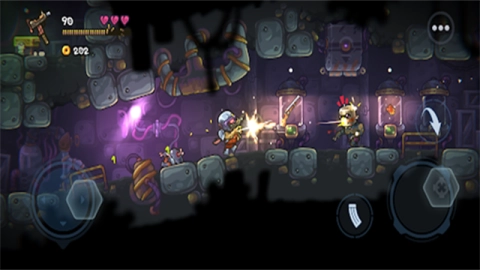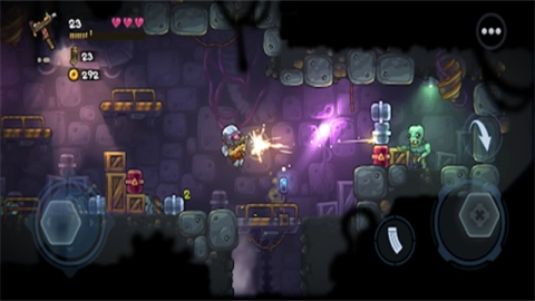 2、通过左侧的虚拟摇杆来控制角色移动,右侧用于激活瞄准并实现持续攻击,而画面中的箭头图标代表跳跃,快来尽情感受这畅快的操作体验吧!