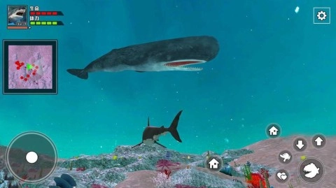 3、来感受一下,在惊险刺激的3D水下世界里,化身鲨鱼,迎接这场终极生存挑战,尽情在水中四处遨游!