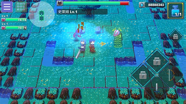 7、召唤伙伴后,进入探索区域,倘若遇到怪物,使用右下角的剑或者弓来展开攻击。
