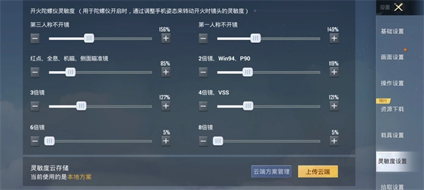 5、开火陀螺仪灵敏度设置如下:第三人称不开镜为156%;第一人称不开镜是149%;红点、全息、机瞄以及侧面瞄准镜的灵敏度为85%;2倍镜、win94、p90的灵敏度设定为119%;3倍镜的灵敏度是127%;4倍镜、vss的灵敏度为121%;6倍镜灵敏度为5%;8倍镜灵敏度同样为5% 。