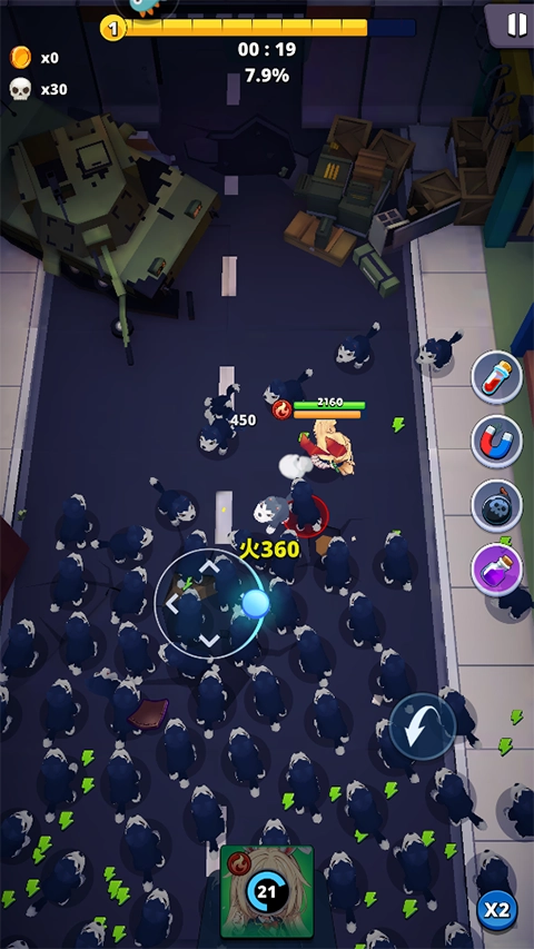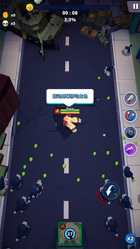 1、游戏操作简单,拖动角色移动,注意走位躲避怪物的攻击