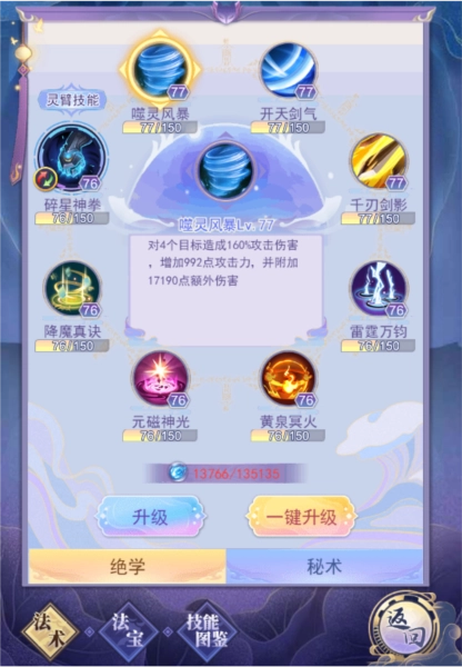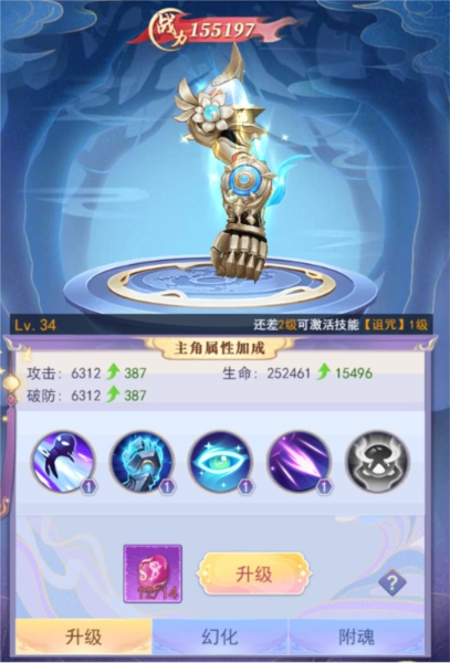 另外还有灵臂系统。包含了升级、灵臂技能、灵臂幻化、附魂等系统,下面来讲解一下: