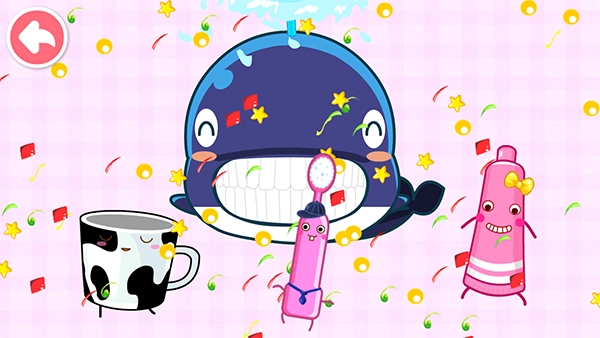 3、完美收官!当宝宝顺利把鲸鱼的牙齿刷得干干净净,鲸鱼会开心得笑出了声,还会向宝宝亮出它洁白的牙齿。此刻,宝宝能感受到自己的努力有了收获,也会愈发珍视自身的牙齿健康。