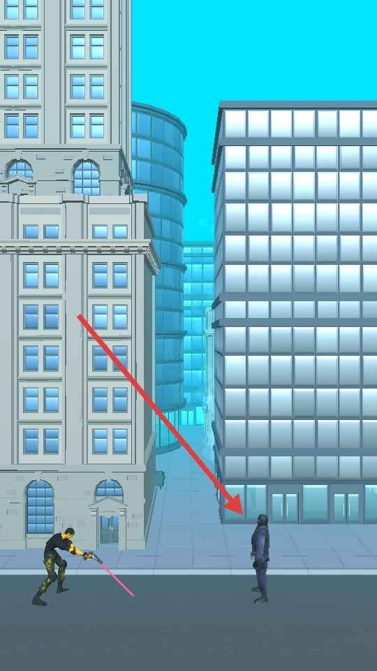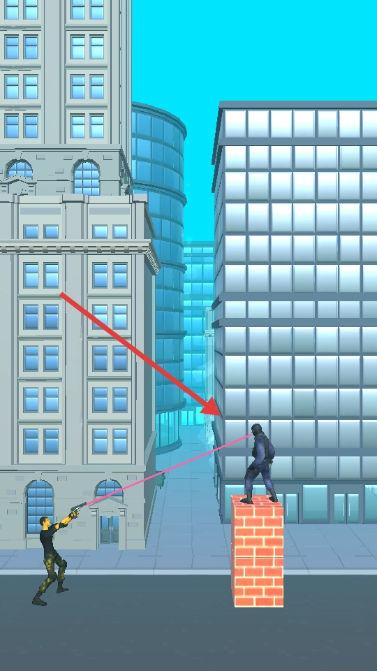 1. 通过拖动屏幕来调节射击角度,松开手后,使子弹在建筑物之间进行弹跳。