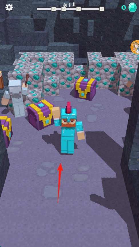 2. 找到有宝箱的房间,顺着箭头所指方向【靠近宝箱】,打开宝箱获取资源,以此提升角色能力。