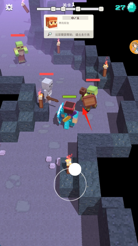 3、当遭遇怪物群时,要瞄准带有箭头标记的敌人,按照【攻击优先目标】的原则,同时配合技能进行清场,从而完成“寻找好友”这一任务。