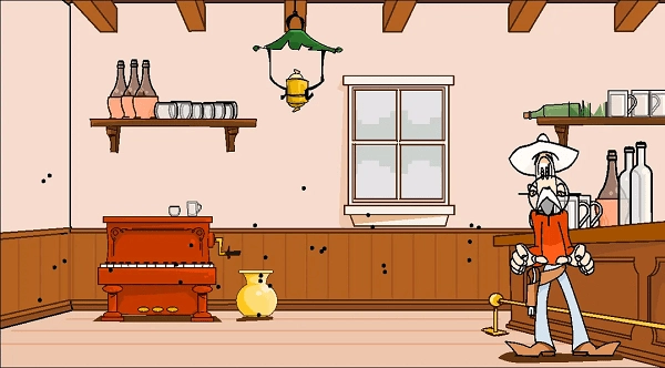 嘿,这可是一款超有意思的休闲射击小游戏哦!别看它问世有些年头啦,可趣味性丝毫不减,依旧是款好玩的小游戏。在游戏里呢,你会和一位美国西部风格的牛仔怪老头在一个小酒吧不期而遇。为了展示自己的枪法,你向这老头发起挑战。然而,万万没想到啊!这怪老头竟然是个绝世高手,不管你怎么开枪射击,就是打不中他。啥?你还不信?那你要是觉得行,就自己来试试呗!在座的各位,只要有一个人能打中他,我就认栽。