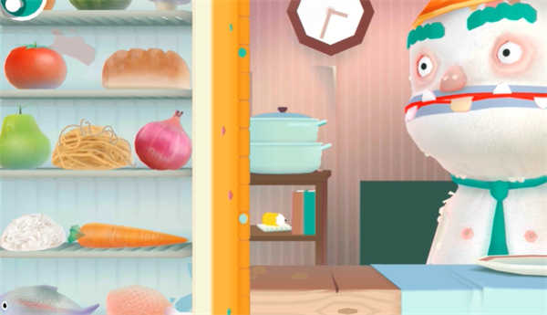 2、完成选择后进入游戏,游戏界面左侧有诸多食物,像胡萝卜、鱼之类的,能够直接拖出使用。