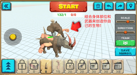 6、若想创建属于自己的生物,可把武器与身体部位连接到动物身上。