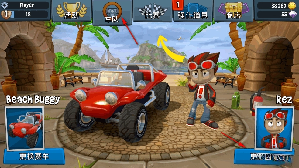 您只需点击【车队】,接着点击【更换赛车】,就能更换不同的赛车。