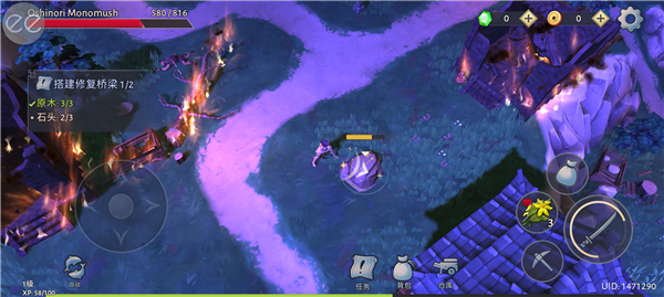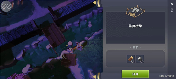 9、随后,玩家依照指引,收集木头与石头就能修复桥梁。